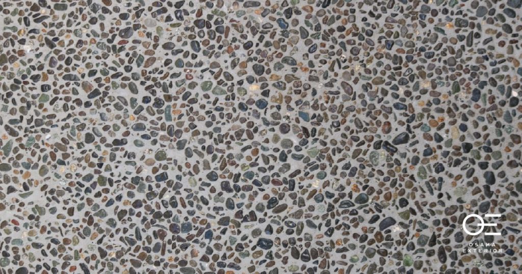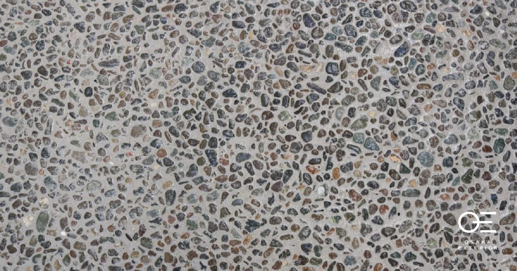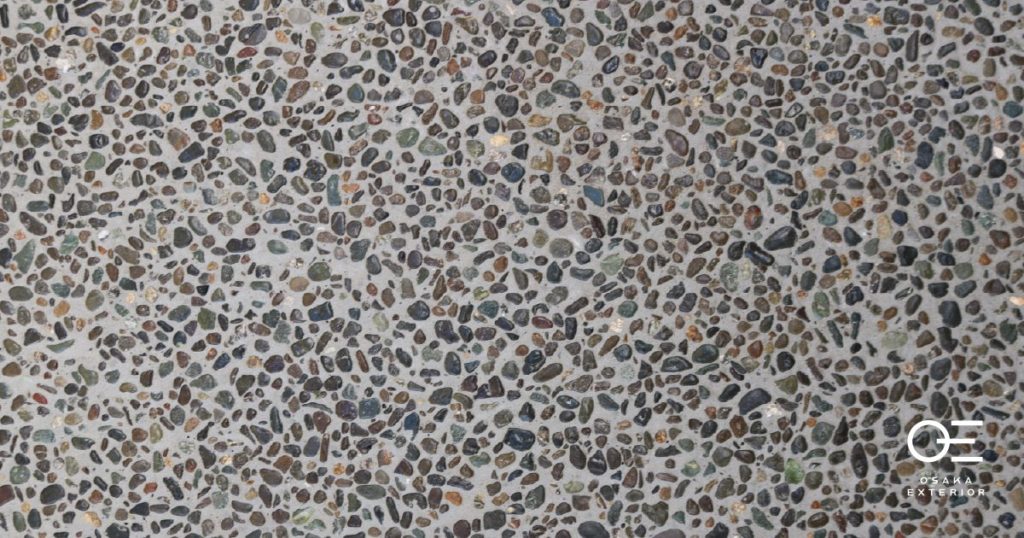 「洗い出し」とは、コンクリートやモルタルの表面を水で洗い流して、砂や石の粒を露出させる仕上げ方法です。石の粒の色によって雰囲気が変わります。