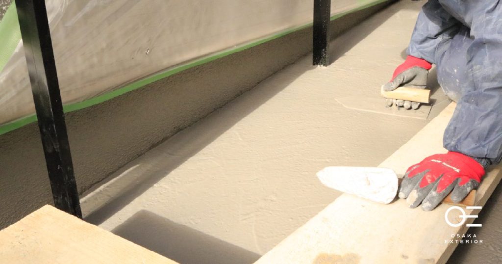 砂や石などの骨材をセメントにまぜたものを均一に塗り付けていきます。