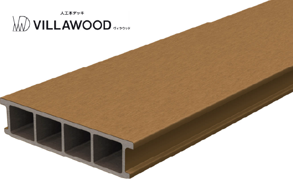 ヴィラウッドは、天然木の木粉と樹脂を組み合わせた人工木デッキ材です。